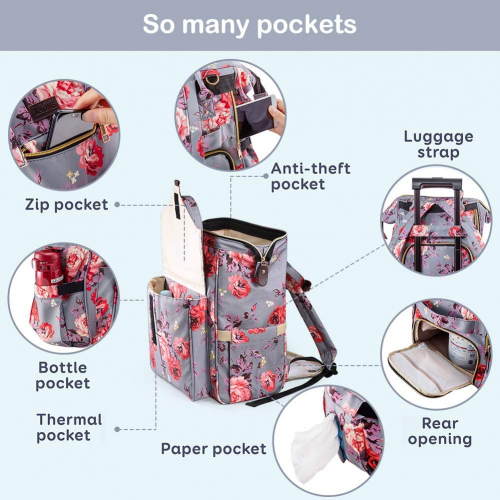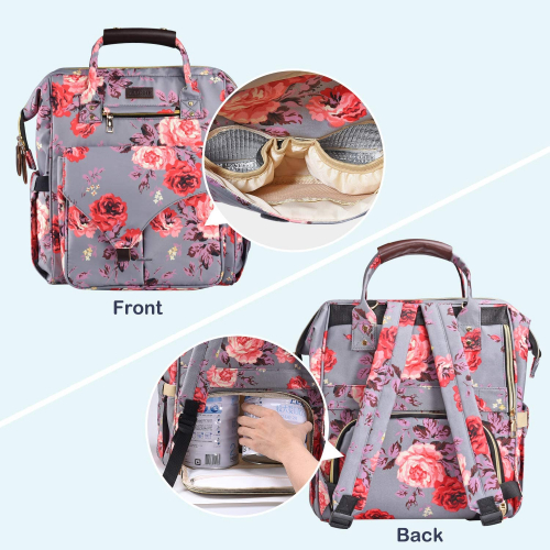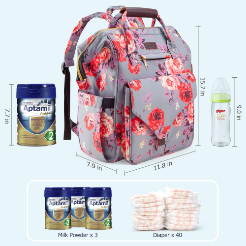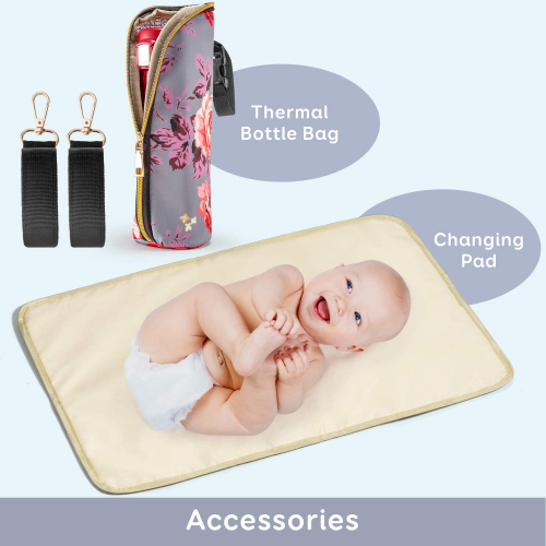 Diaper Bag Backpack - Waterproof Baby Bag Floral Insulated Durable Travel Maternity Back Pack for Baby Girls with Diaper Pad Bottle Bag (Floral), Upgraded Large Capacity Multifunction Nappy Bags - Kaome