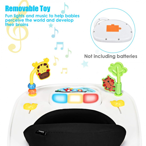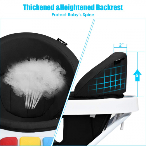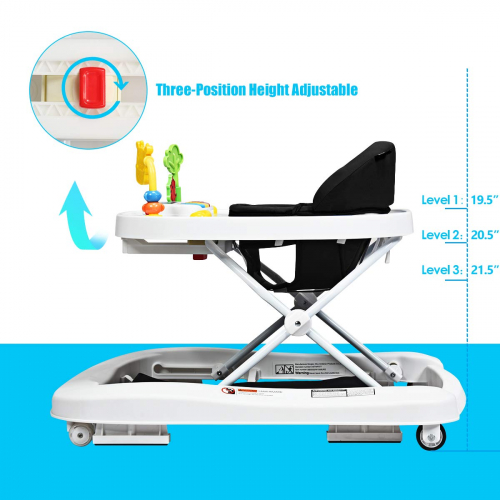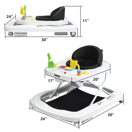 Foldable Baby Walker - Detachable Trampoline Mat, Walk-Behind, Music, Black, Activity Walker with Toys, Adjustable Height, Learning-Seated, High Back Padded Seat, 3 in 1 Toddler Walker Bouncer - INFANS