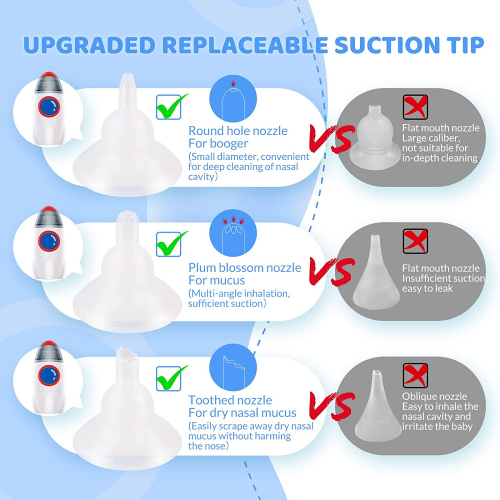 Baby Nasal Aspirator - Electric Nose Sucker with USB Rechargeable - Adjustable intensities & 3 Replaceable Silicone Tips Nasal Aspirator for Baby Toddlers - FXOEE
