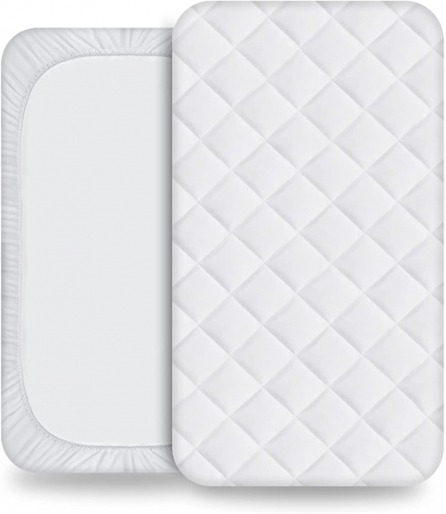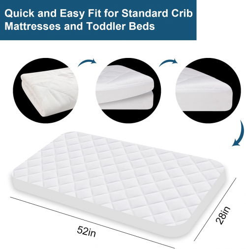 Crib Mattress Protector - Breathable Ultra Soft Cotton Toddler Crib Mattress Pad Protective Fit Baby Bed, Waterproof Pad Cover for 52" × 28", Cradle Mattress Cover (1-Pack, White) polyester - sundee
