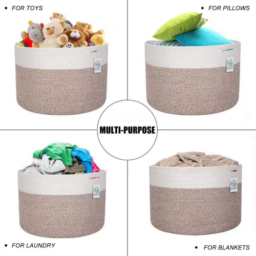 Extra Large 22 x14 Inches Decorative Woven Cotton Rope Basket - Kid Laundry Hamper, Laundry Basket, Light Brown, Baby and Dog Toy Storage Baskets Bin, Towel Basket, Blanket Basket - MINTWOOD Design