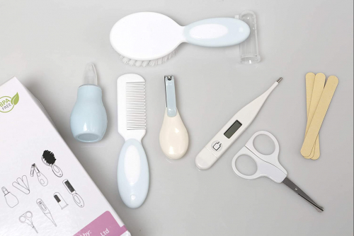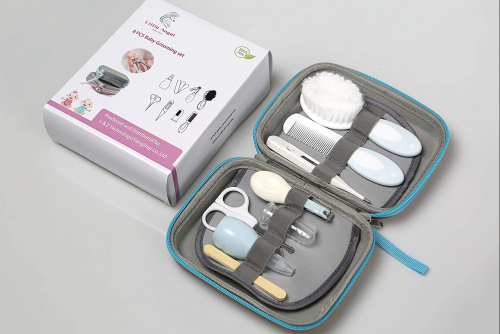 Baby Grooming Kit - Baby First Aid Kit, Baby Care Kit,Nursery Kit Baby Care, 10PCS Baby Hair Brush | Nail Clipper | Nose Cleaner | Finger Toothbrush | Nail Scissors | Manicure Kit Blue - Little Angel