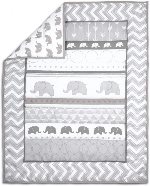 Elephant Walk Crib Bedding Set | 3 Piece Unisex Nursery Set | Crib Quilt - Crib Skirt Included, Crib Sheet - The Peanutshell