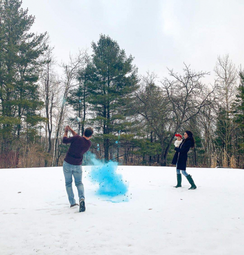 Gender Reveal Golf Balls Exploding Golf Ball Set - 2 Balls - 1 Pink & Blue Plus Golf Tees and 20 PINK and 20 BLUE Baby Gender Voting Stickers - Winsharp