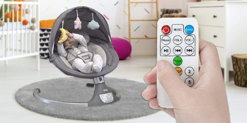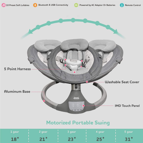 Nova Baby Swing for Infants - Motorized Portable Swing - Bluetooth Music Speaker with 10 Preset Lullabies, Gray - Jool Baby Products, Remote Control - Jool Baby Products