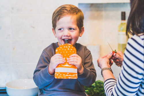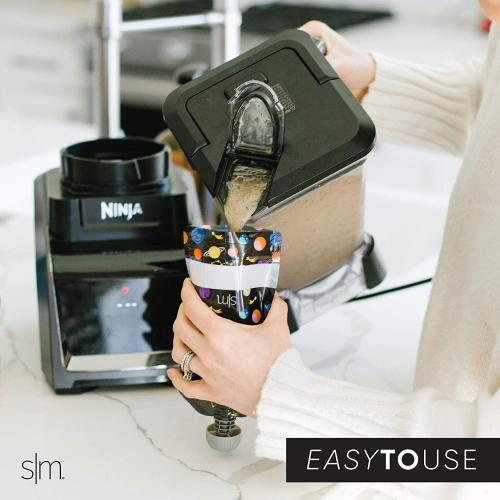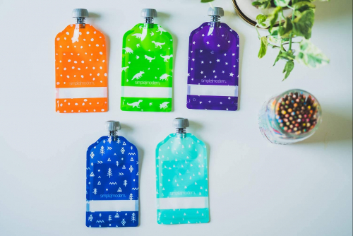 Reusable Food Pouches 10-Pack 5oz - Baby Food Storage Toddler Kids Squeezable Pouch Washable Freezer Safe - 5 Fun Designs 5 oz Assorted - Simple Modern