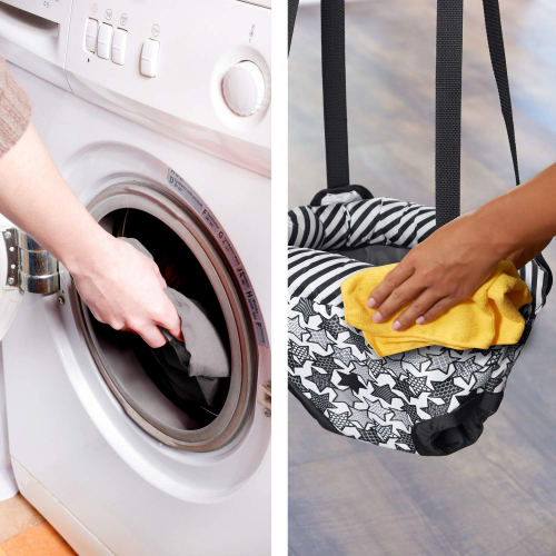 - Care instructions: Carefully read all instructions and warnings on the product, product labels, and instruction manuals before assembly and use of the ExerSaucer. Cleaning Instructions: For Plastic Parts: Wipe surface clean with cloth slightly moistened with mild soap and water. Allow to air dry. For Seat Pads: Machine Wash Separately, Cold Water – Delicate Cycle. No chlorine bleach. Tumble Dry: 10 – 15 Minutes on Low Heat – Remove Immediately