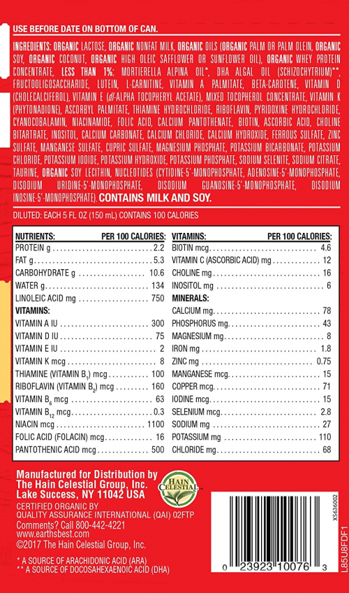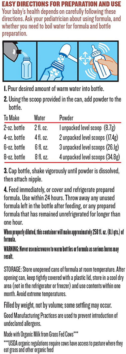 Organic Baby Formula - Omega-3 DHA and Omega-6 ARA, Dairy Based Powder Infant Formula with Iron, Non-GMO, 32 oz - Earth's Best
