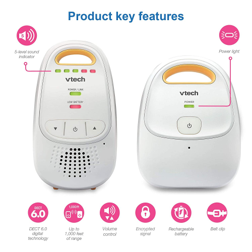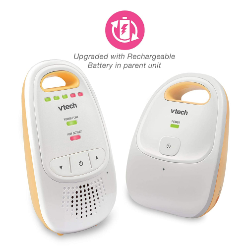 Upgraded Audio Baby Monitor with 1 Up-Graded Parent Unit with Rechargeable Battery with Best-in-Class Long Range - Privacy Guaranteed DECT 6 Transmissions, Yellow Monitor with One Parent Unit Yellow, Cystal-Clear Sound - VTech