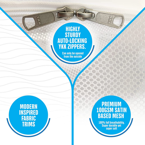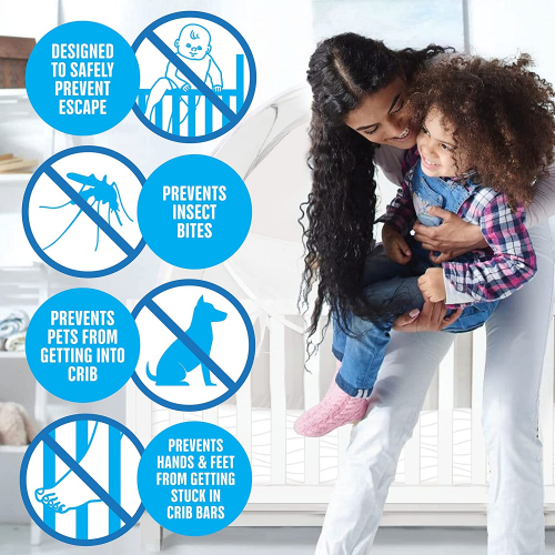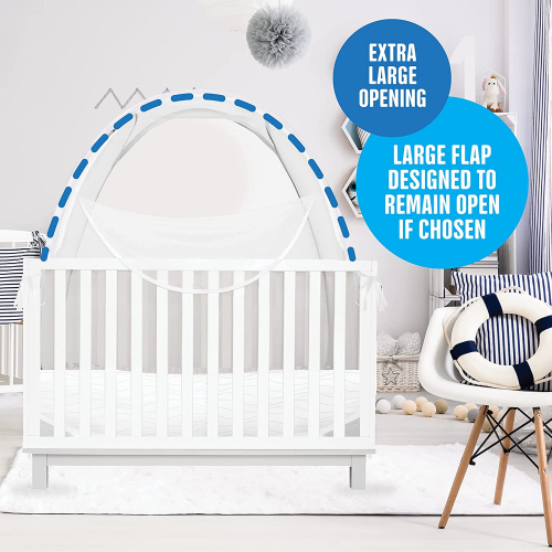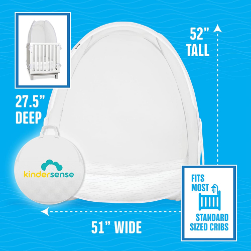 KinderSense® - Baby Safety Crib Tent - Premium Toddler Crib Topper to Keep Baby from Climbing Out - See Through Mesh Crib Net - Mosquito Net - Pop-Up Crib Tent Canopy to Keep Infant in White Wave - KinderSense
