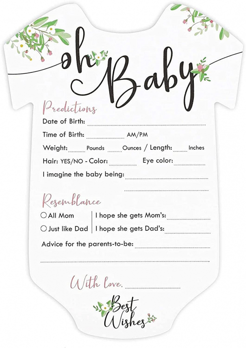 Baby Shower Predictions and Advice Cards - Floral Design, 5 x 7 in, 50 Pack - Sparkle and Bash