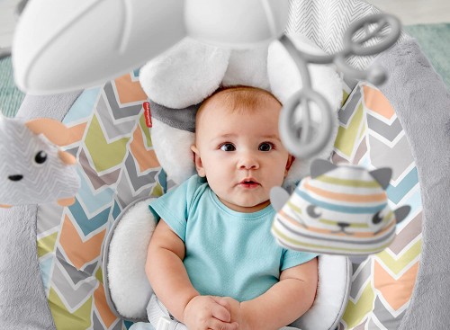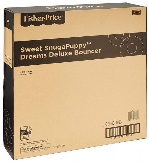 Sweet Snugapuppy Deluxe Bouncer - Music, and Calming Vibrations [Amazon Exclusive] Snugapuppy FFP, Portable Bouncing Baby Seat with Overhead Mobile - Fisher-Price