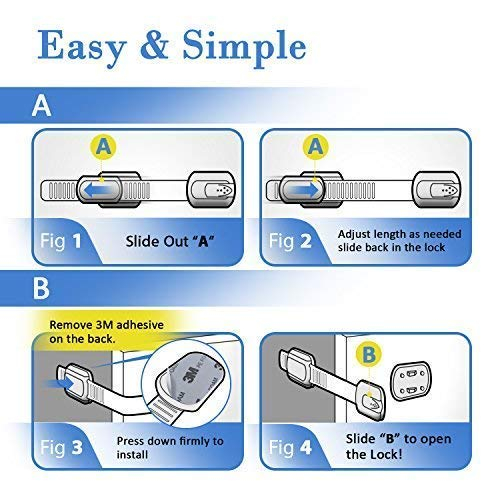 Child Safety Cabinets Strap Locks - Fridge, Oven, For Cabinets, Drawers, Multi Use Latch, Toilet Seat, 8 pack adjustable-8pack - Socub