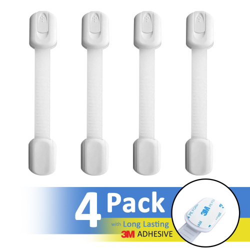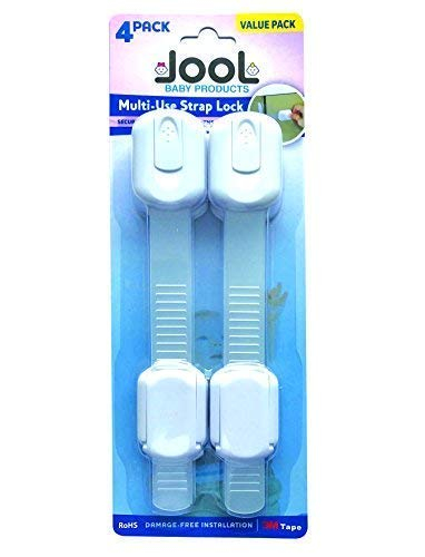 Child Safety Strap Locks (4 Pack) for Fridge - Toilet, 3M Adhesive No Drilling - Jool Baby, Cabinets, Dishwasher, Drawers - Jool Baby Products