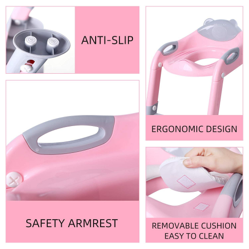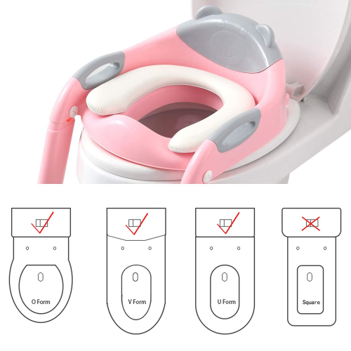 Potty Training Seat Ladder Girls - Toddlers Toilet Training Potty Seat, Kids Potty Training Toilet Seat with Ladder (Gray/Pink) - Fedicelly