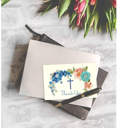 Christian Thank You Cards - 48 Pack), Floral Cross Design with Envelopes (4 x 6 In - Best Paper Greetings