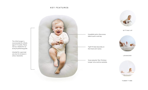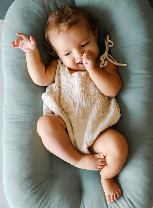 Snuggle Me Organic Bare | Baby Lounger & Infant Floor Seat | Newborn Essentials | Organic Cotton - Fiberfill | Slate - snuggle me