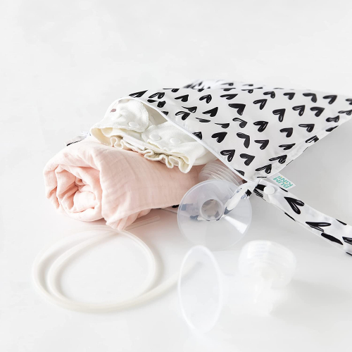 Waterproof Wet Bag - Wet Swimsuits, Stroller, Dirty Gym Clothes, Reusable for Travel, Washable, Toiletries, Diapers, Pool, 12x14 – Black Hearts, Beach - Bumkins