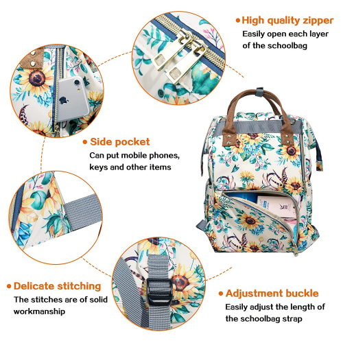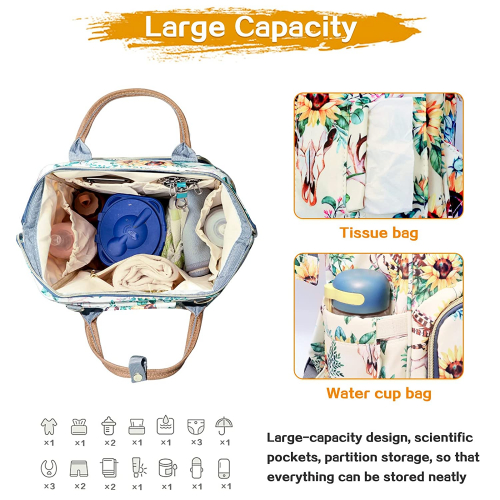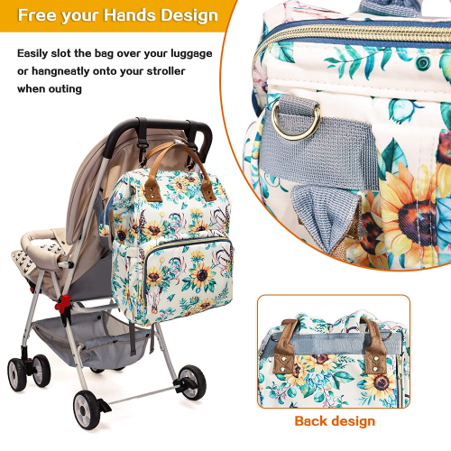 Floral Diaper Bag Backpack - Women Travel Baby Nappy Changing Bag (White), Waterproof Baby Care Bag - Limhoo