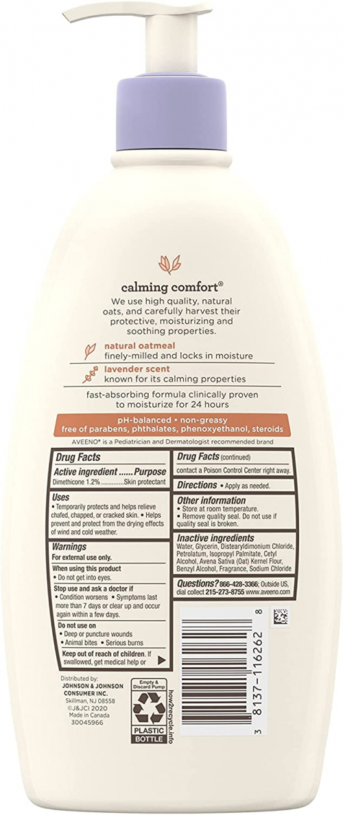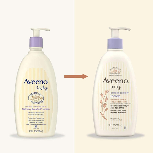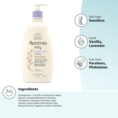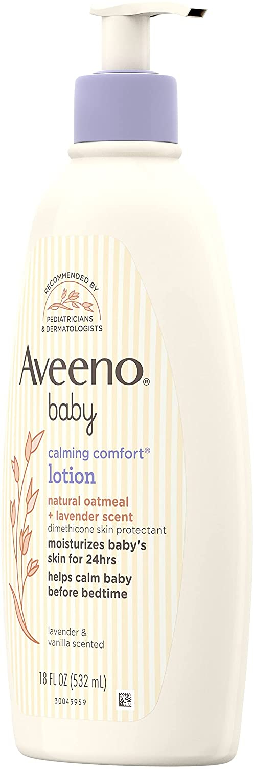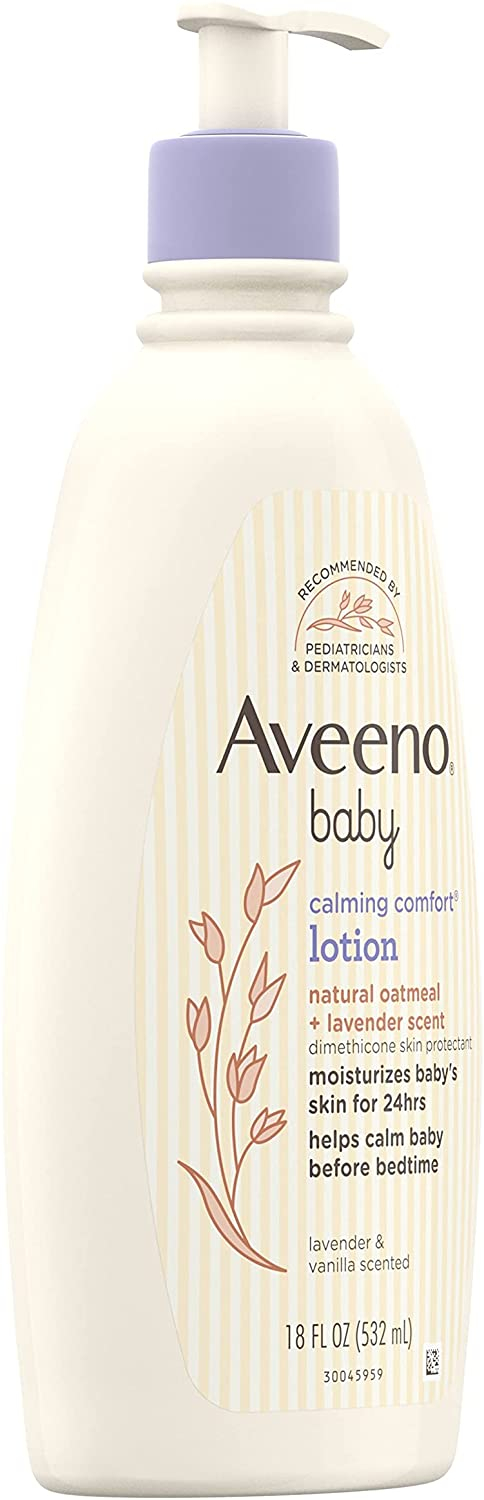 Calming Comfort Moisturizing Lotion with Relaxing Lavender & Vanilla Scents - Non-Greasy Body Lotion with Natural Oatmeal & Dimethicone, Paraben- & Phthalate-Free, 18 fl. Oz - Aveeno Baby
