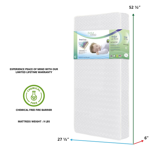 Sleep Triple Stage Crib Mattress Air Flow with Natural Fiber - Greenguard Gold Certified - Evolur