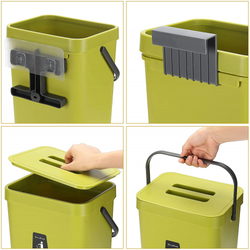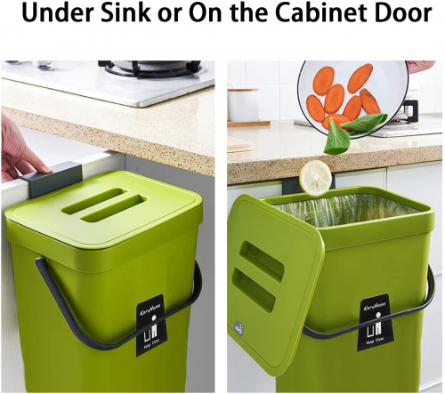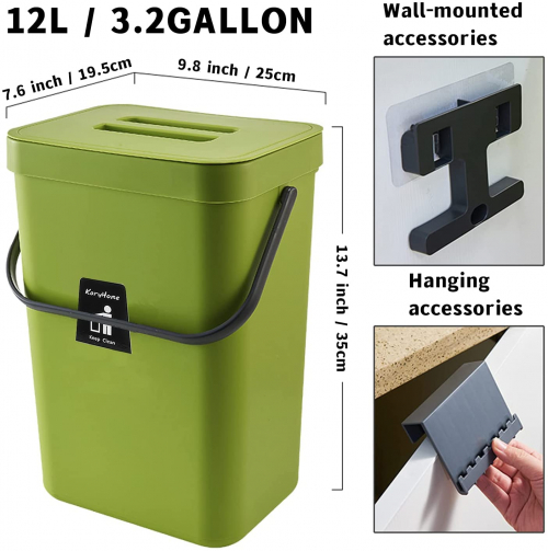 Small Trash Can with Lid for Kitchen Cabinet Door,Diaper Pail,Hanging Garbage Can for Baby Crib/Cupboard/Bathroom - 3.2 Gallon Green Green 12 Liter / 3.2 Gallon - KaryHome