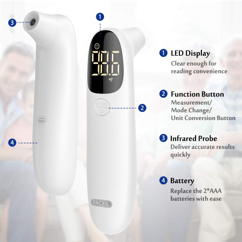 Forehead Thermometer for Fever by FACEIL - Touchless Infrared Thermometer with Fever Alert and 32 Group Memory Recall - FACEIL