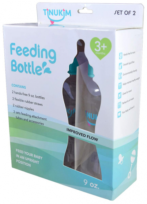 iFeed 9 Ounce Self Feeding Baby Bottle with Tube - Handless Anti-Colic Nursing System - White - 2-Pack 9 Ounce White - Tinukim