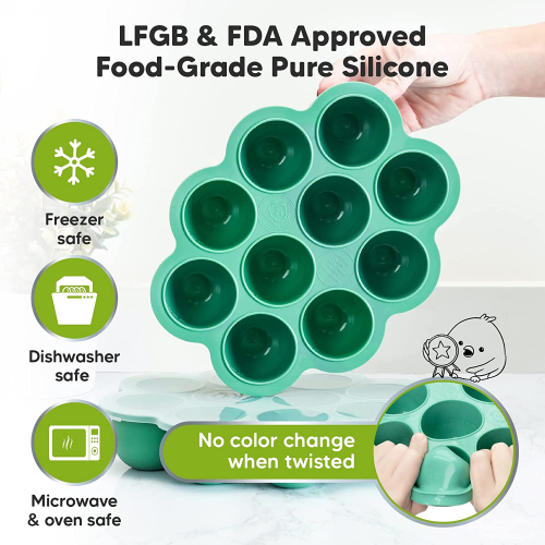 Silicone Baby Food Freezer Tray with Clip-on Lid - Breast Milk Trays for Freezer - Baby Food Containers - Baby Food Trays for Freezing - BPA-Free Baby Food Storage (Alpine Green), Dishwasher, Microwave - KeaBabies