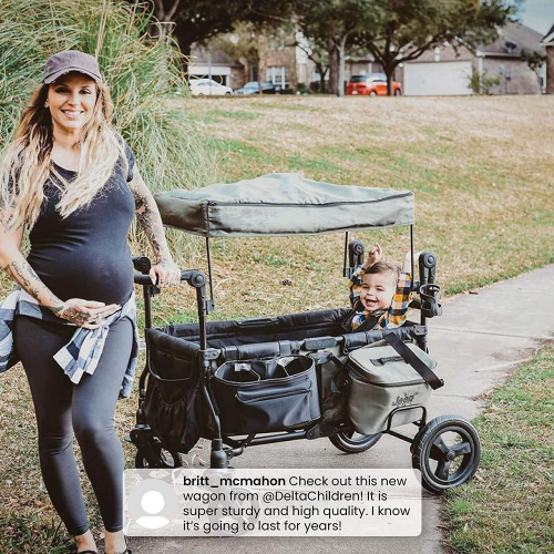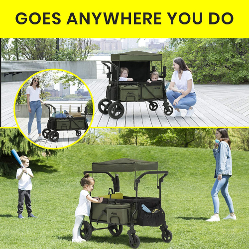 Jeep Deluxe Wrangler Stroller Wagon by - Includes Cooler Bag - Black/Green, Parent Organizer and Car Seat Adapter - Delta Children