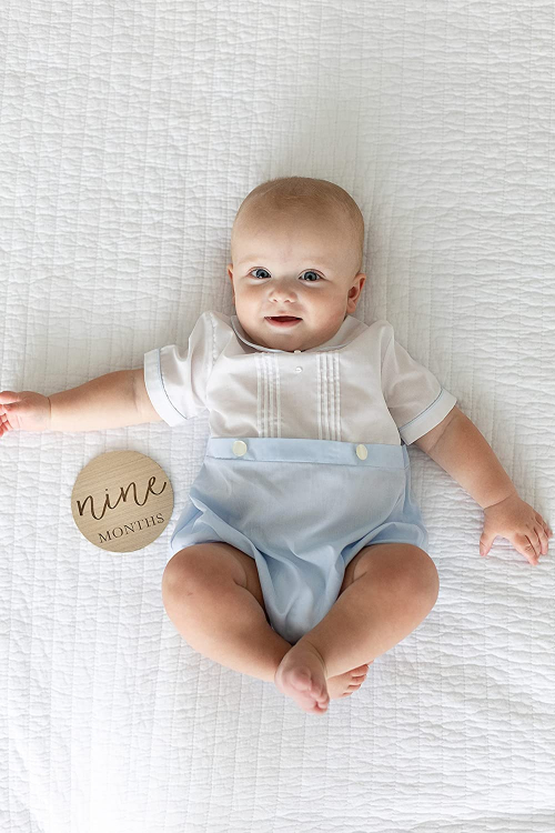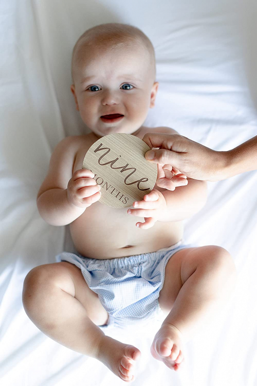 Wooden Milestone Photo Cards - Baby Announcement Cards, Double Sided Photo Prop Milestone Discs, Pregnancy Journey Milestone Markers,Multi - Little Pear