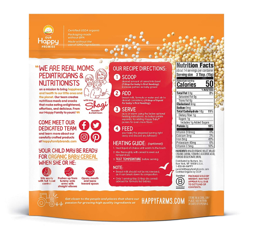 Organics Clearly Crafted Cereal Whole Grains Oats & Quinoa - Organic Baby Cereal in a Resealable Pouch with Iron to Support Baby's Brain Development a Great First Food,7 Ounce (Pack of 6) - Happy Baby