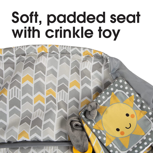 Shopping Cart and High Chair Cover | Sunshine Gray and Yellow Chevron with Sun Book Toy | 2-Point Safety Belt | Wipeable - Machine Washable | 6-48 months - Boppy