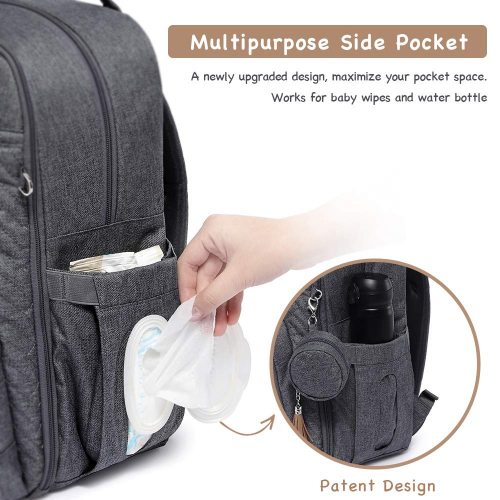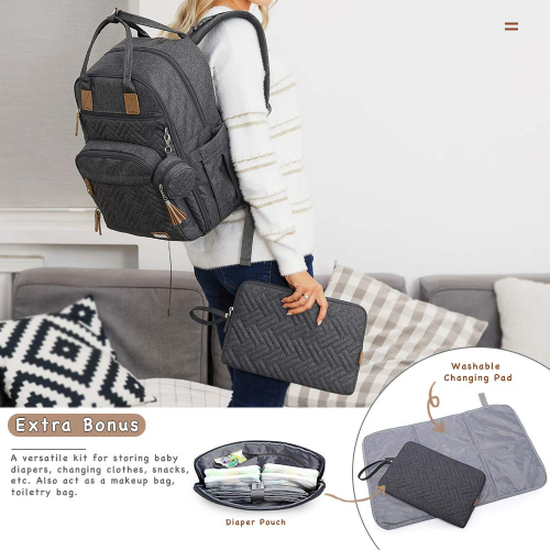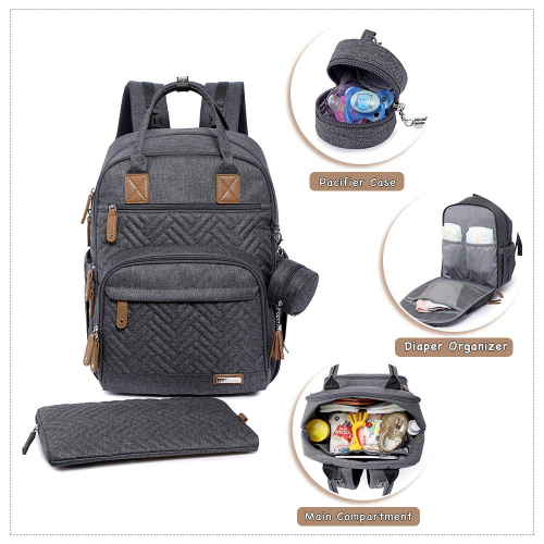 Diaper Bag Backpack - Pacifier Case and Stroller Straps, iniuniu Large Unisex Baby Bags for Boys Girls, Waterproof Travel Back Pack with Diaper Pouch, Dark Gray, Washable Changing Pad - iniuniu