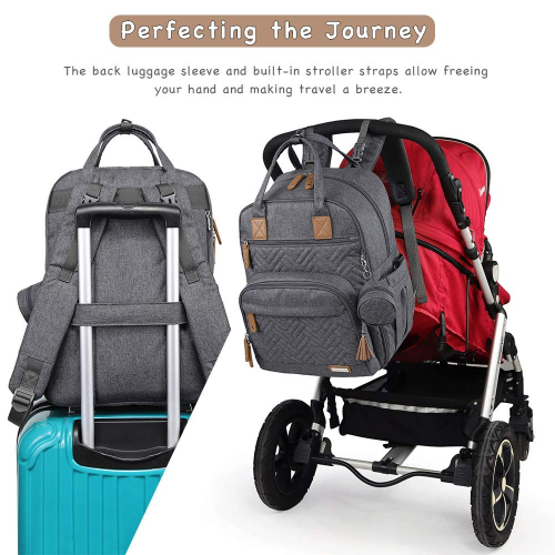 - Safety warning: To prevent stroller from tipping, please confirm with your retailer about the maximum bearing capacity of the stroller handle, and make sure the diaper bag is securely tucked on your stroller. To prevent strap entanglement when bag is hanging on stroller