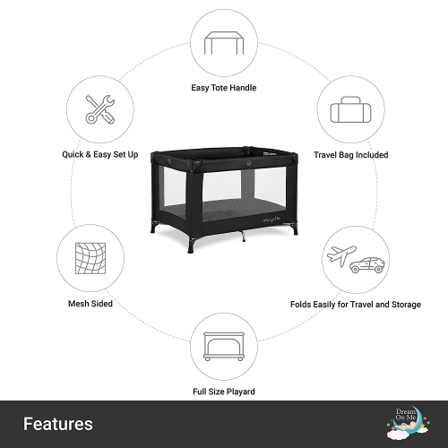 Nest Portable Play Yard With Carry Bag And Shoulder Strap - Black - Dream On Me