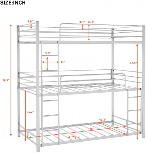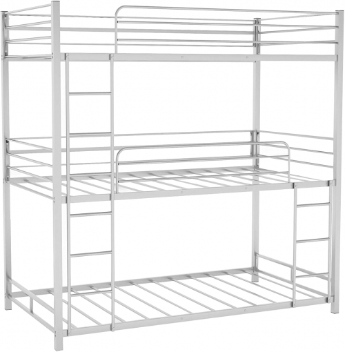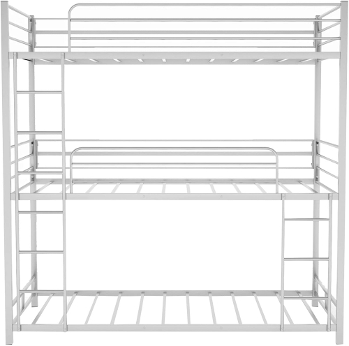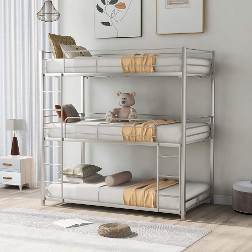 Triple Bunk Bed Metal Frame with Safety Guardrail for Teens Guests Silver Twin over Twin over Twin - Merax