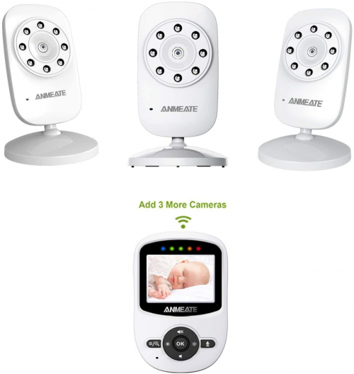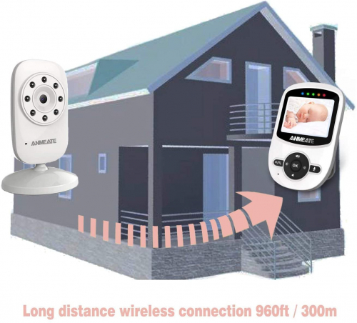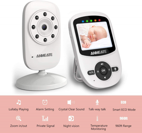 Video Baby Monitor with Digital Camera - Night Vision, ANMEATE Digital 2.4Ghz Wireless Video Monitor with Temperature Monitor, High Capacity Battery 2.4inch, 2-Way Talk, 960ft Transmission Range - ANMEATE