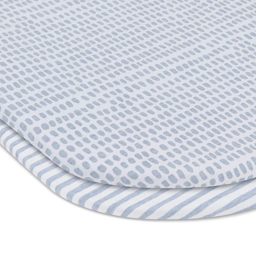 Ely’s & Co. Patent Pending Waterproof Bassinet Sheet 2-Pack Set for Baby Boy - 100% Cotton - Stripes and Splashes Bassinet Misty Blue, Jersey Knit Cotton Sheets with Waterproof Lining — Misty Blue - Ely's & Co.