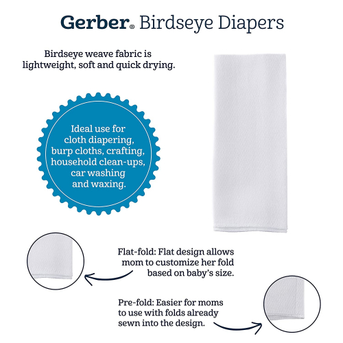 Birdseye Flatfold Cloth Diapers - White, 10 Count - Gerber