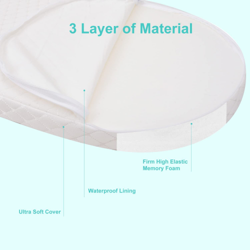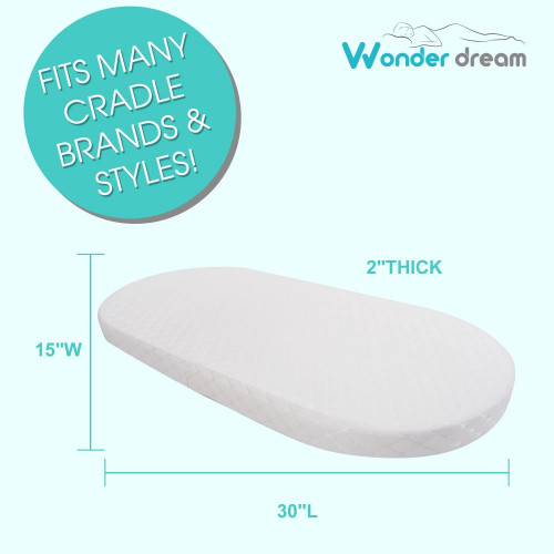 Wonder Dream Baby Bassinet Mattress with Removal Waterproof Cover - 15" x 30" x 2", Non-Toxic, Oval Shaped, Breathable, Hypoallergenic, Fits Portable Bassinets - Wonder buggy