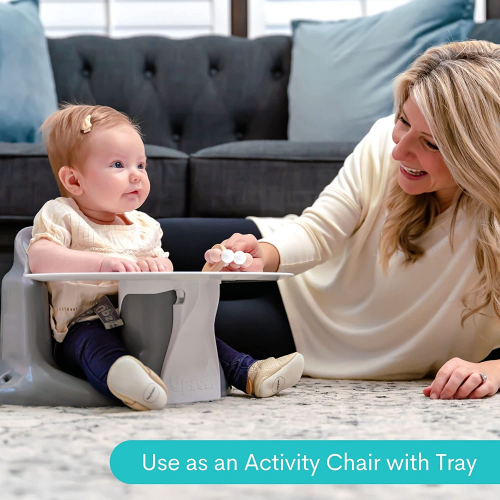 Baby Floor Seat Booster Chair for Sitting Up with Removable Tray for Meals and Playtime - Developed with Physical Therapists for Safe and Healthy Hip Development and Posture Grey - Upseat