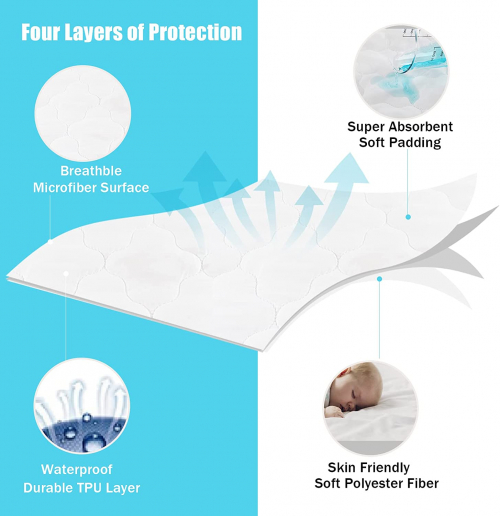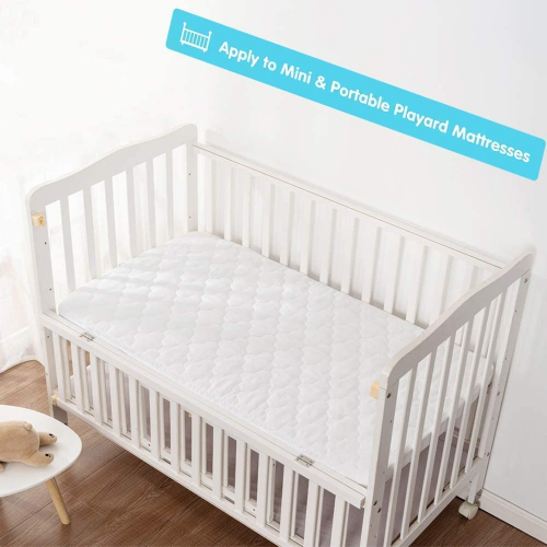 Crib Mattress Protector - Breathable Ultra Soft Cotton Toddler Crib Mattress Pad Protective Fit Baby Bed, Waterproof Pad Cover for 52" × 28", Cradle Mattress Cover (1-Pack, White) polyester - sundee