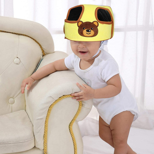 Baby Protective Cap Infant Helmet Toddler Head Protection Soft Cotton Sponge Adjustable Cap Baby Bumper Hat Head Cushion Safety Helmet Bumper Bonnet for Outdoors Sports Learn to Walk(Yellow) - Tinje