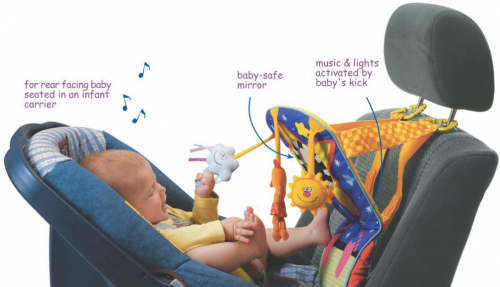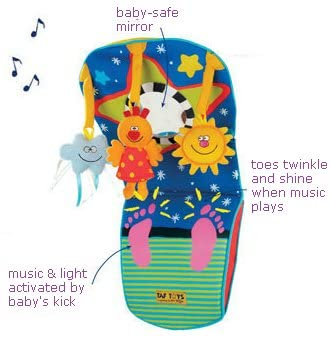 Toe Time Infant Car Seat Toy | Kick and Play Activity Center with Music - and Jingling Toys | Fun Travel Baby Toy for Rear Car Seat | Easier Drive with Newborns, Mirror, Babies, Lights - Taf Toys