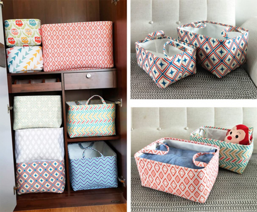 Rectangular Storage Bin Shelf Basket Canvas Fabric Toy Box - 15.7‘' x 11.8'’ x 8.3‘') Geometrical lines 15.7‘' x 11.8'’ x 8.3'‘, Waterproof Coating Nursery Hamper with Handles, for Home, Books, Office, Gift Basket (Geometrical lines, Clothes - Peniujef