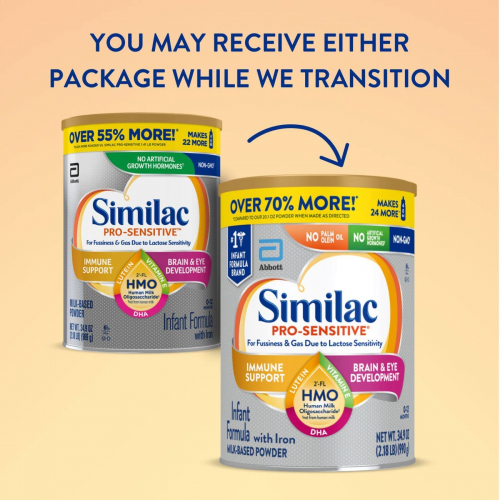 Pro-Sensitive Non-GMO Infant Formula with Iron - 34.9 oz, Powder, For Immune Support, with 2'-FL HMO, 3 Count (One Month Supply), Baby Formula - Similac