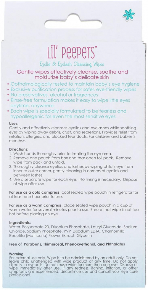 Lil' Peepers Baby Eyelid & Eyelash Soft Cleansing Wipes - Pediatrician Recommended (30 Count) 1, Rinse-Free - Natural Essentials