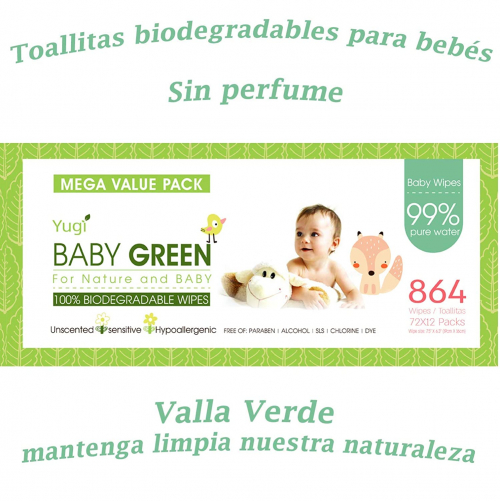 Yugi Green Baby Wipes Unscented – Value Pack (12 Packs of 72) 864 –compostable 99% Pure Water Plastic FREE Moist Newborn Diaper Wipes Fragrance Free - Wet Wipes for Babies & Adults Sensitive Skin - Yugi Baby Green