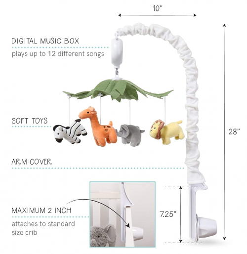 Safari Animals Musical Crib Mobile for Baby Boys & Girls | Digital Music Box with 12 lullabies… - The Peanutshell